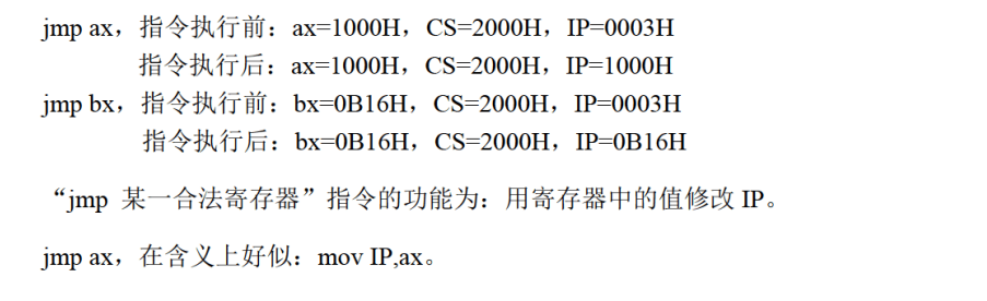 jmp:若想同时修改CS、IP的内容,可用形如“jmp 段地址: 偏移地址”的指令完成