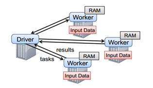 要使用Spark,开发者需要编写一个Driver程序,它被提交到集群以调度运行Worker,如下图所示。Driver中定义了一个或多个RDD,并调用RDD上的action,Worker则执行RDD分区计算任务。