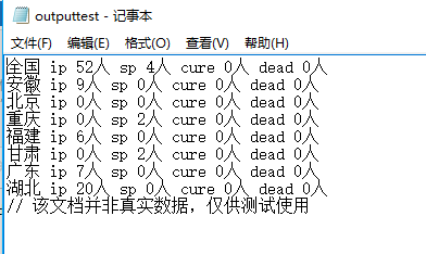 out.write("// 该文档并非真实数据,仅供测试使用\r\n");
