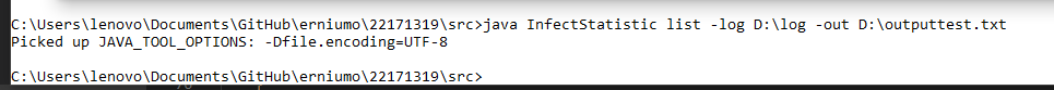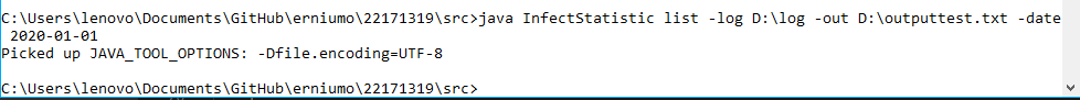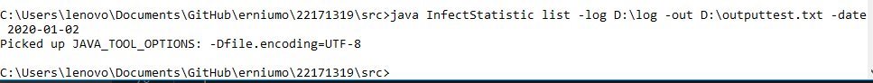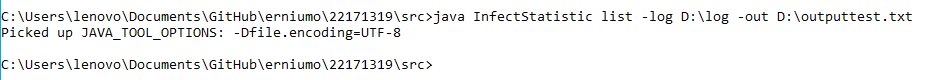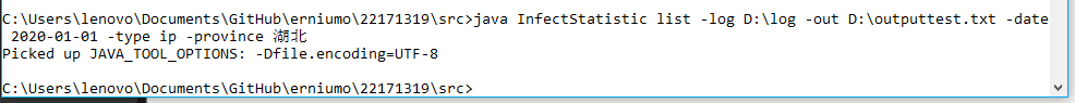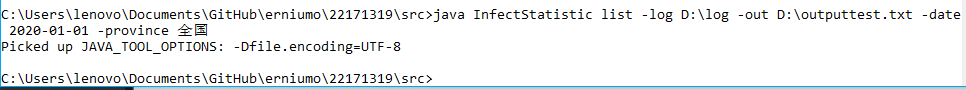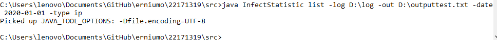 使用 java InfectStatistic list -log _path -out D:\out2.txt -date 2020-10-22