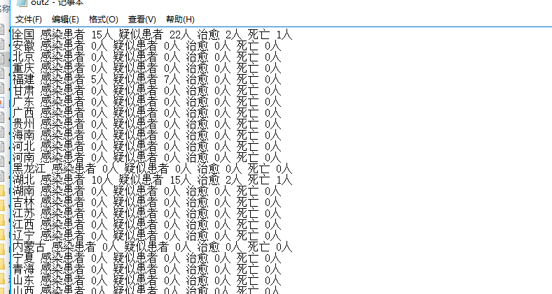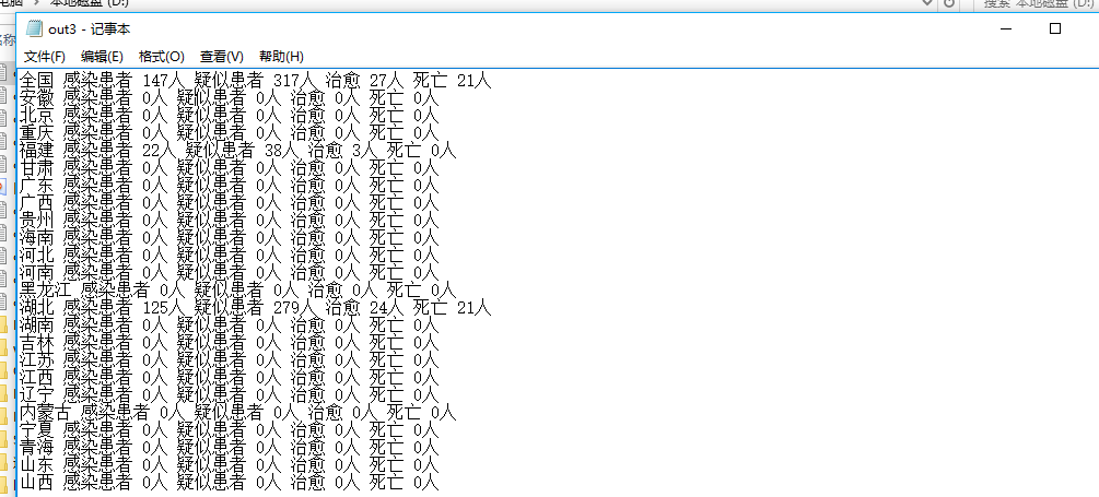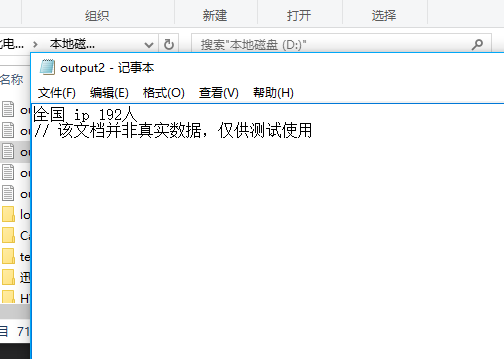 最后,我们要做的时如何统计人数,我是设计多个数组,记录各个省的各种人数,然后每读取一个文件就进行统计,最后就是我们需要的结果,每次执行命令,都是从最开始的那个日志读起,一直累积到我们所需要的这天的日志,将累积的结果输出到-out参数指定的目录下。