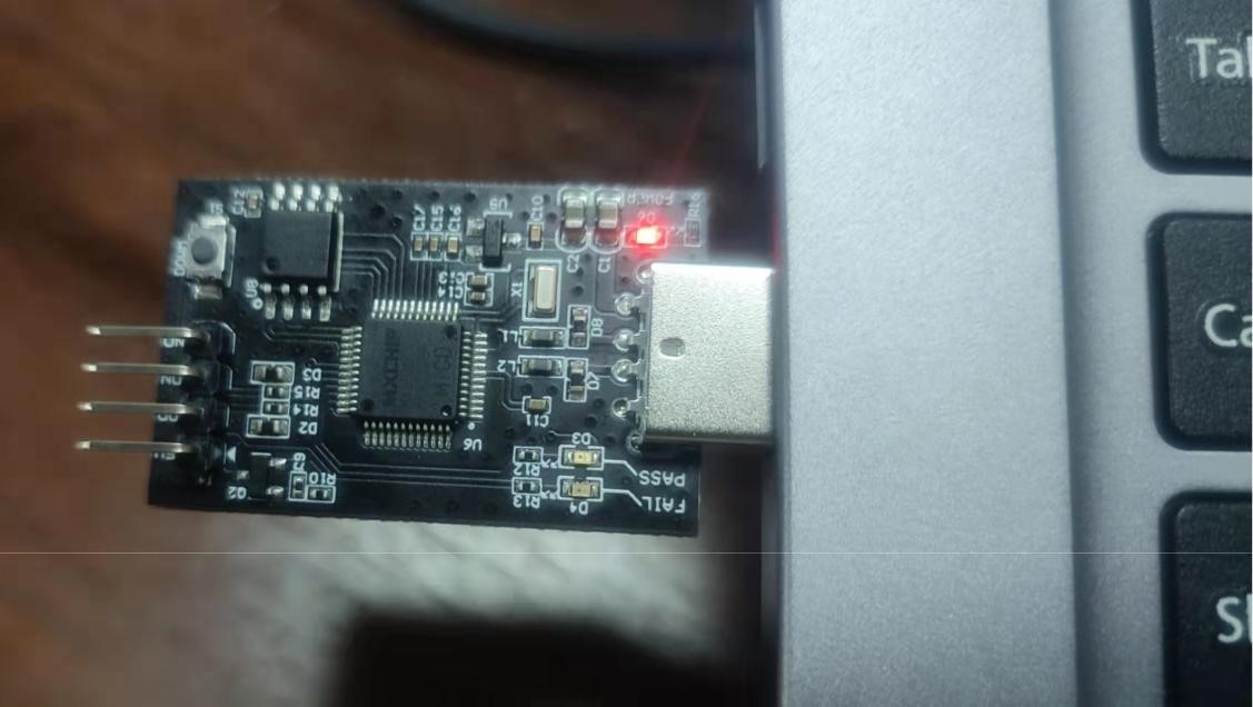 3.3.2 给升级狗供电,按下重启按键,等待程序烧录