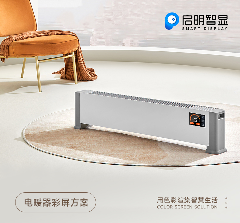 一到冬天,保暖就成为了人们的首要任务,作为一个季节性很强的产品,电暖器依靠长达好几个月的寒冷天气占领着大量市场。一方面,由于国内南北两地存在气候差异,取暖方式也不大相同,而使用电暖器产品只是众多取暖方式的一种,其被替代的可能性高,另一方面,消费者对取暖电器的性能、智能水平也不断提出着更高要求,年轻消费群体越来越重视产品外观设计,精致好看的产品对他们来说极具吸引力,外观较为朴素的传统电暖器产品已无法迎合他们的审美需求。电暖器厂商应顺应互联网潮流,将传统产品模式转换到互联网融合模式,不断进行产品创新与升级换代,打造智能化产品,拓展场景应用,方能力争市场份额。因此启明智显带来2.4寸串口屏应用于电暖器的解决方案,助力提升产品的差异竞争。