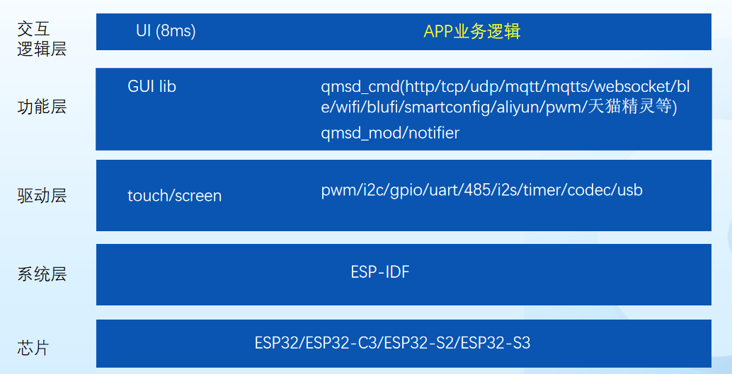 - 集成WIFI\蓝牙,支持按键、升级触屏等多种交互方式