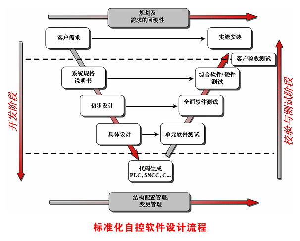| 一、前言 近年来,国内工控行业的发展日新月异,国内企业在DCS领域也有了长足的发展,涌现出一大批优秀企业和产品。然而,国内工控行业的发展并不平衡:一方面,在工控硬件方面和国际水平全面接轨;另一方面,在工控软件设计方面却遇到发展瓶颈,全面落后于国外先进水平。这方面的介绍文章也很少见到。 在目前国际上较通用的自控软件开发工程中,编写源代码只占整个开发过程的30%。而从工程角度对产品功能进行划分,并形成一系列相关文档(编写详细的代码说明、相关支持文档等)将占去70%的开发时间。大多数设计在现场安装调试前就已经通过仿真进行了校验测试,进而确保整个系统的现场安装调试可以在很短的时间内完成。而在我国,这一情况正好相反,甚至尤有过之,编写源代码占去了开发的绝大部分时间,冗长的现场调试更是费时费力。造成大多数项目不能按时完工,且频繁超过预算。由于缺乏完善的规范化的设计方法,国内的自控设计在控制精度和控制效果方面仍然处于落后水平,同时也极大地限制了完成复杂的大规模控制系统的能力。 造成这一情况固然有我国工程化开发水平较低的原因,开发观念、工具平台上的不足也是很重要的因素。从当前我国从事工控软件开发的人员构成来看,一方面大多数开发人员工程化软件开发方面的知识较为缺乏;另一方面,目前的大学教育对软件工程概念仍然认识不足,教学方法和教育平台仍较落后。这两方面原因造成了我国工控软件的开发水平、尤其是工程化水平仍然较低。与国外优秀的工控软件开发过程相比,我们自己开发的软件常常有源代码而无流程图、无详细说明文档、质量不高、设计复用困难、需要长时间在现场进行调试以及升级维护困难。 从国际上来看,自控软件设计的发展已经进入到自动化、图形化开发阶段。用户通过功能强大的系统级图形化软件开发工具对所开发的项目进行描述,建立整套系统的形式化模型。只要能够建立起正确的系统模型,图形化开发工具就可以根据该模型生成PLC或C语言的源代码,提供完善的系统流程图、标准化的软件说明文档,并对系统功能进行仿真校验,显著缩短现场调试时间,可以极大提高自控软件的开发效率。下面,我们将从几个方面介绍一下国外先进的工控软件设计的理念,希望能给国内自控界的朋友带来一些启示,早日赶超国际先进水平。 |
