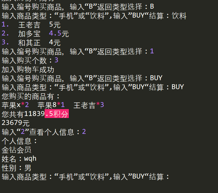 a = input("输入商品类型:“手机”或“饮料”,输入”BUY“结算:")
