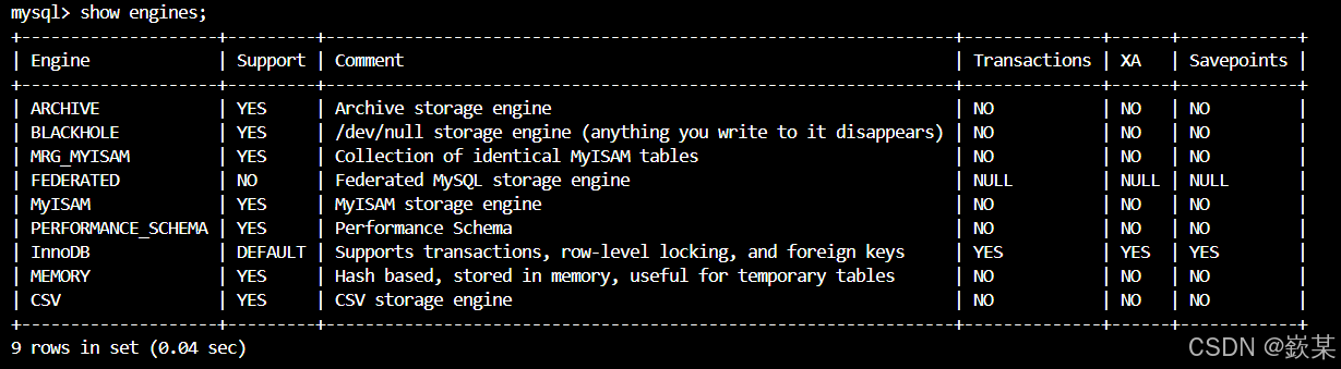 MySQL的核心就是插件式存储引擎,支持多种存储引擎。