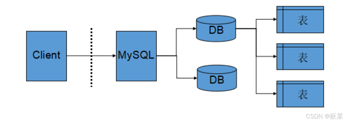 所谓安装数据库服务器,只是在机器上安装了一个数据库管理系统程序,这个管理程序可以管理多 个数据库,一般开发人员会针对每一个应用创建一个数据库。 为保存应用中实体的数据,一般会在数据库中创建多个表,以保存程序中实体的数据。 数据库服务器、数据库和表的关系如下: