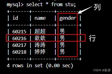 insert into stu (id, name, gender) values (060216, '欽欽', '男');