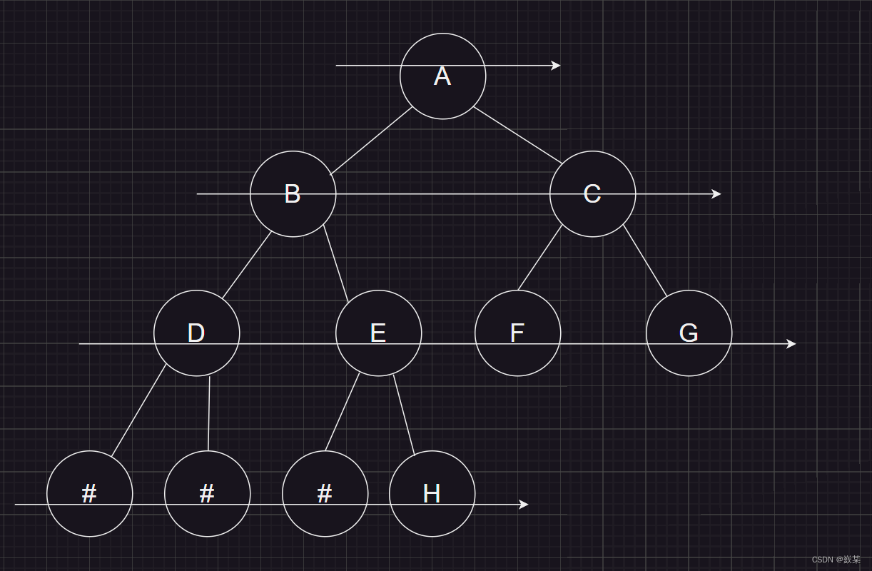 层序遍历:除了前序遍历、中序遍历、后序遍历外,还可以对二叉树进行层序遍历。设二叉树的根结点所在层数为1,层序遍历就是从所在二叉树的根结点出发,首先访问第一层的树根结点,然后从左到右访问第2层上的结点,接着是第三层的结点,以此类推,自上而下,自左至右逐层访问树的结点的过程就是层序遍历。