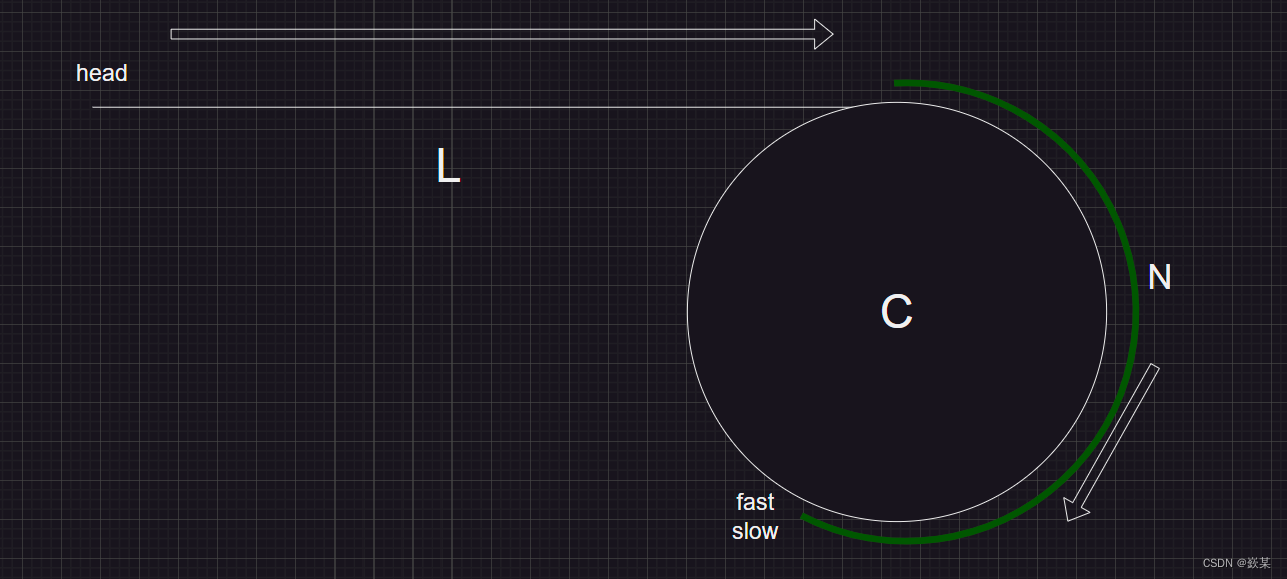 当fast和slow之间的距离为 -1 时,实际上它们之间的距离为: (C - 1)