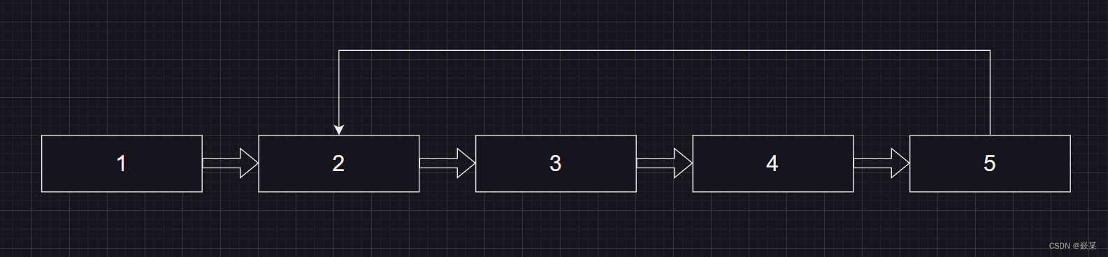 链表带环的意思就是说链表的某个节点的next指针指向了前面的某个节点(如图),当然、在极端情况下,也可能指向自己。我们在做题的时候可以将上图抽象成下图: