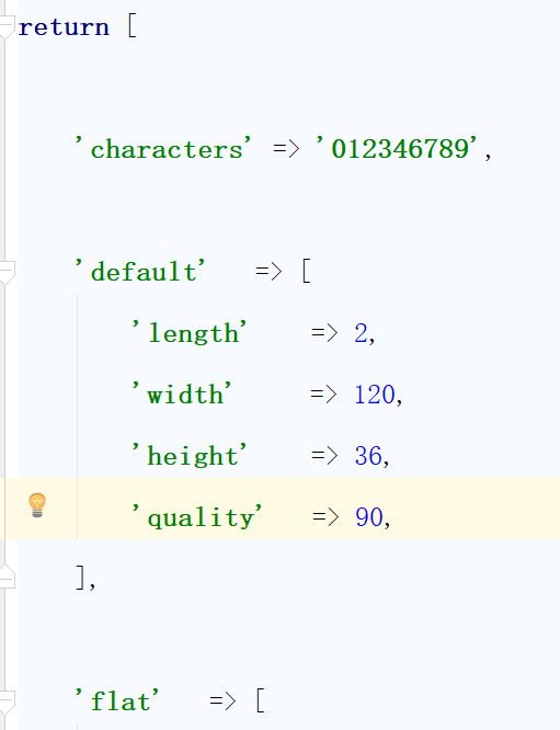 return [ 'default' => [ 'length' => 5, 'width' => 120, 'height' => 36, 'quality' => 90, ], // ... ];