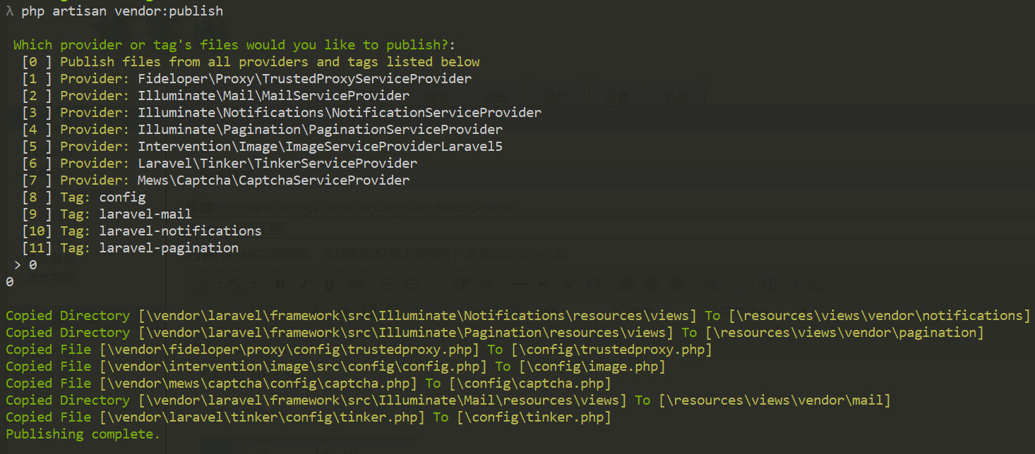 $ php artisan vendor:publish