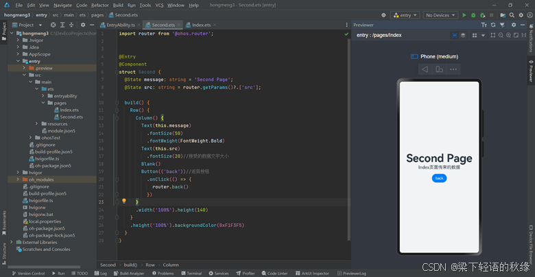 4.在entry/src/main/ets/pages/Index.ets页面文件中编写代码