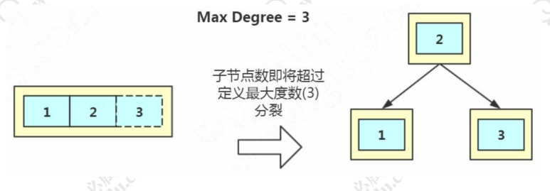 第二个,节点上的关键字的数量越多,我们的指针数也越多,也就是意味着可以有更多的分叉(我们把它叫做“路数”)。因为分叉数越多,树的深度就会减少(根节点是 0)。