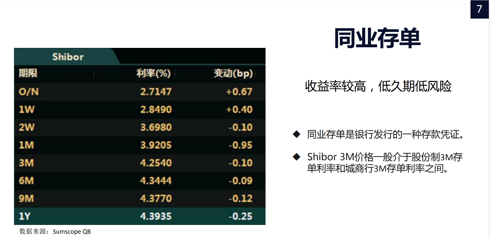 3. 同业存单介于两者之间