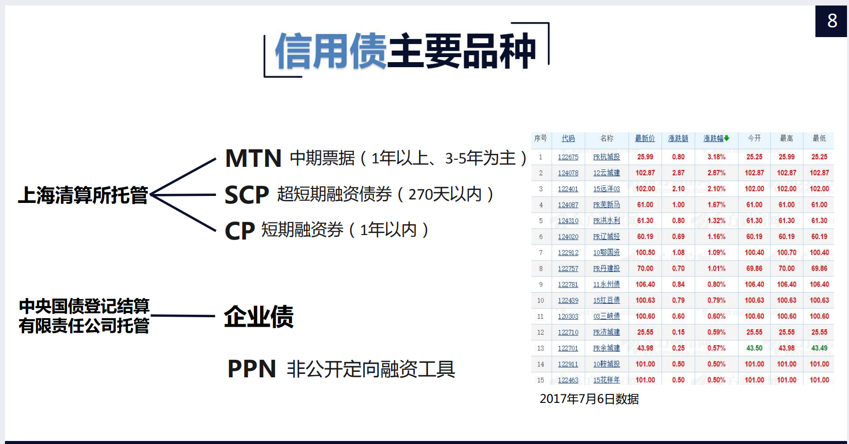 - 超短期融资债券(SCP)、短期融资券(CP)、中期票据(MTN) 托管在 上海清算所