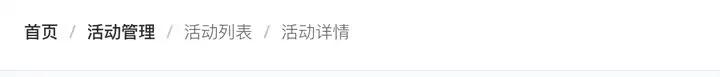 面包屑,显示当前页面在系统层级结构中的位置,并能向上返回,提供一个有层次的导航结构, 并标明当前位置。