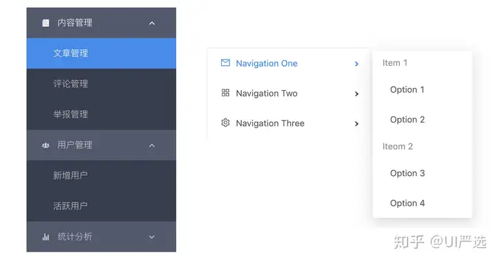 导航可以解决用户在访问页面时: 在哪里,去哪里,怎样去的问题。一般导航分为“侧边栏导航”和“顶部导航”2 种类型。