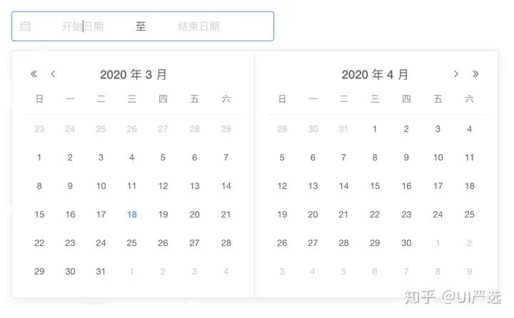 输入或选择日期的控件,当用户需要输入一个日期,可以点击标准输入框,弹出日期面板进行选择。