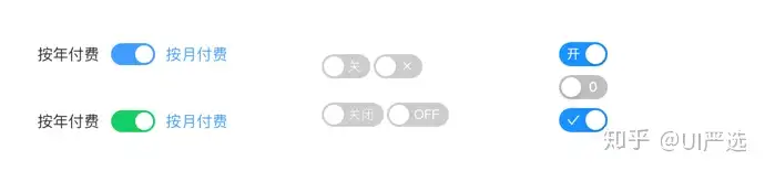 表示两种相互对立的状态间的切换,多用于触发「开/关」。