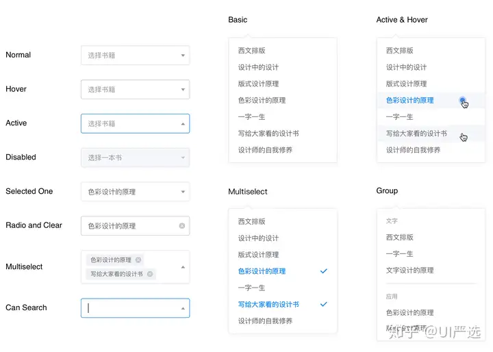 在一组备选项中进行单选