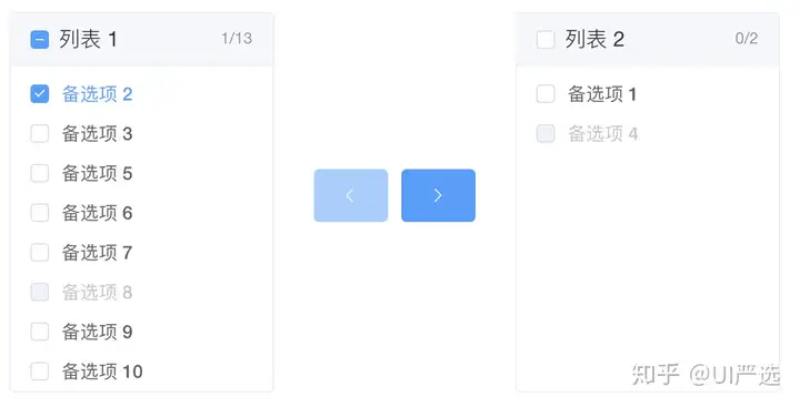 穿梭选择框用直观的方式在两栏中移动元素,完成选择行为。