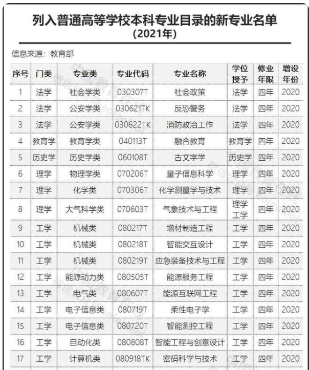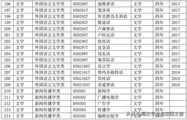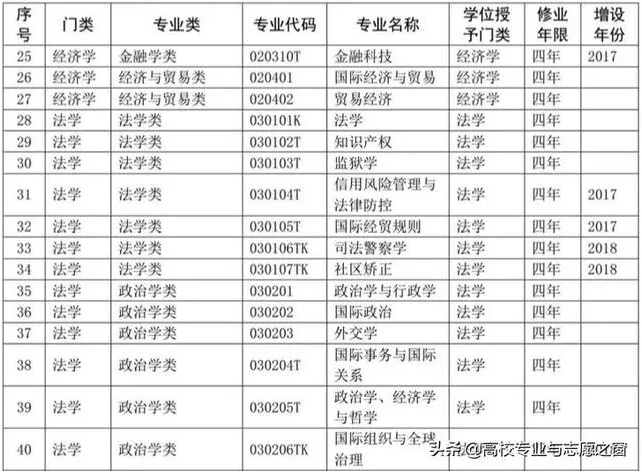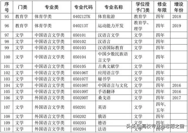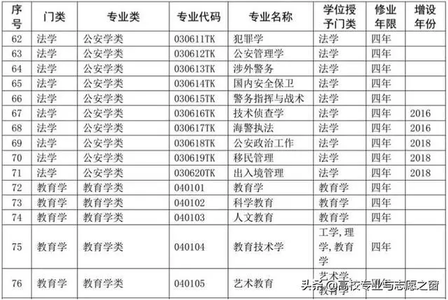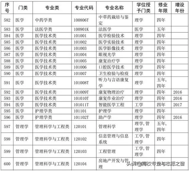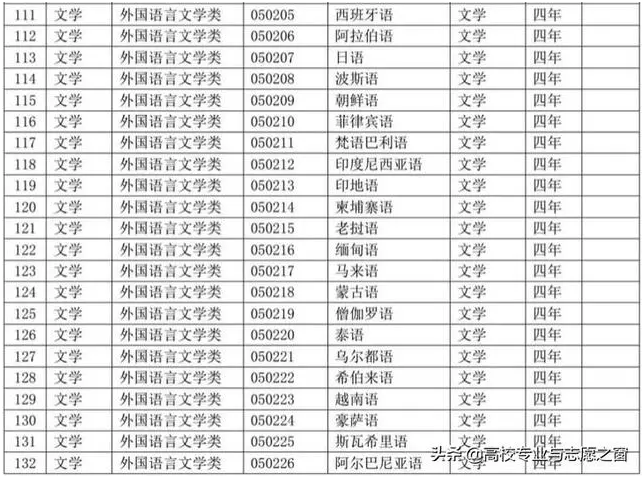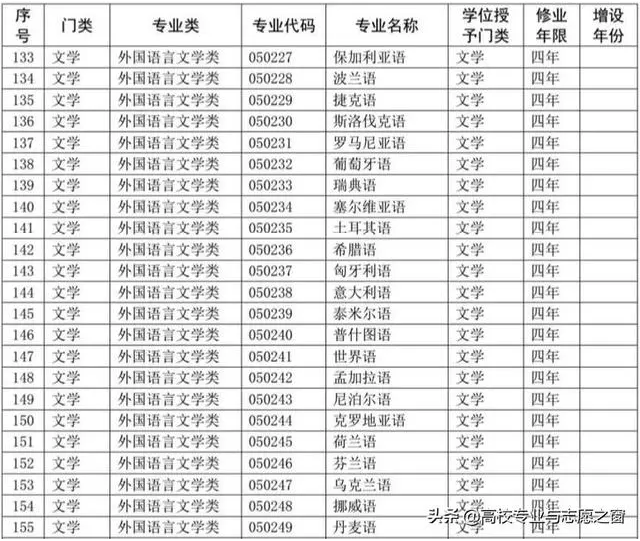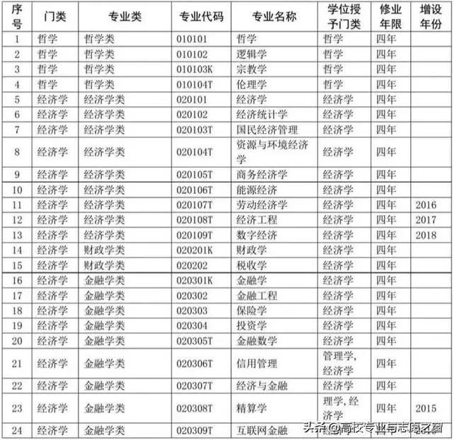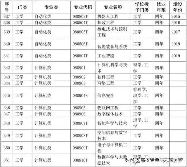 以下表格是教育部官网提供的高校本科专业完整名单: