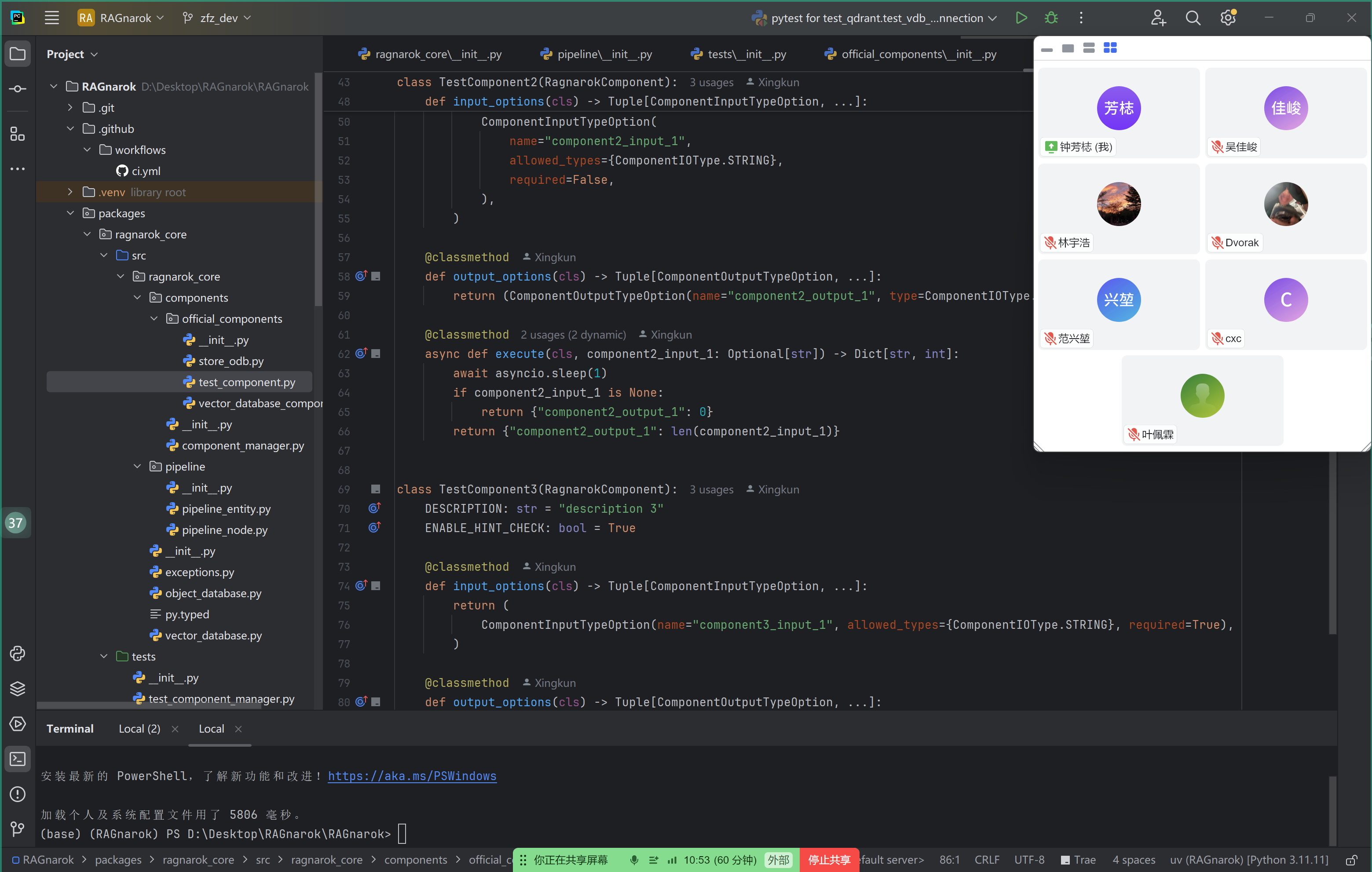 | 钟芳梽 | 后端 | 完成retrieval的component | 为component编写pytest,测试功能完整性 | |