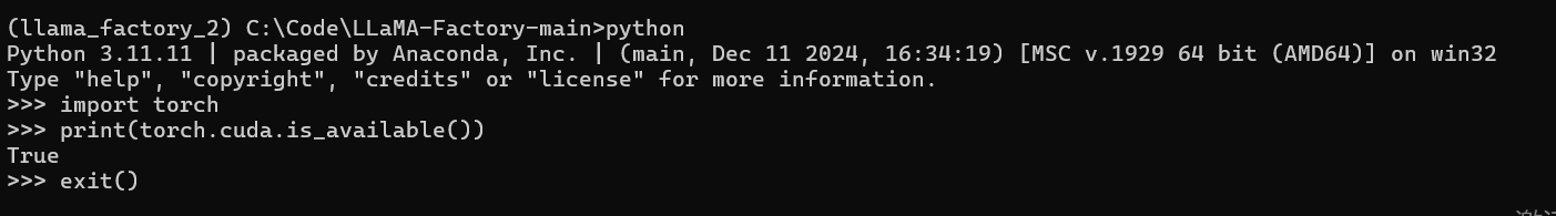 使用 anaconda 创建用于 LLaMa-Factory 的虚拟环境