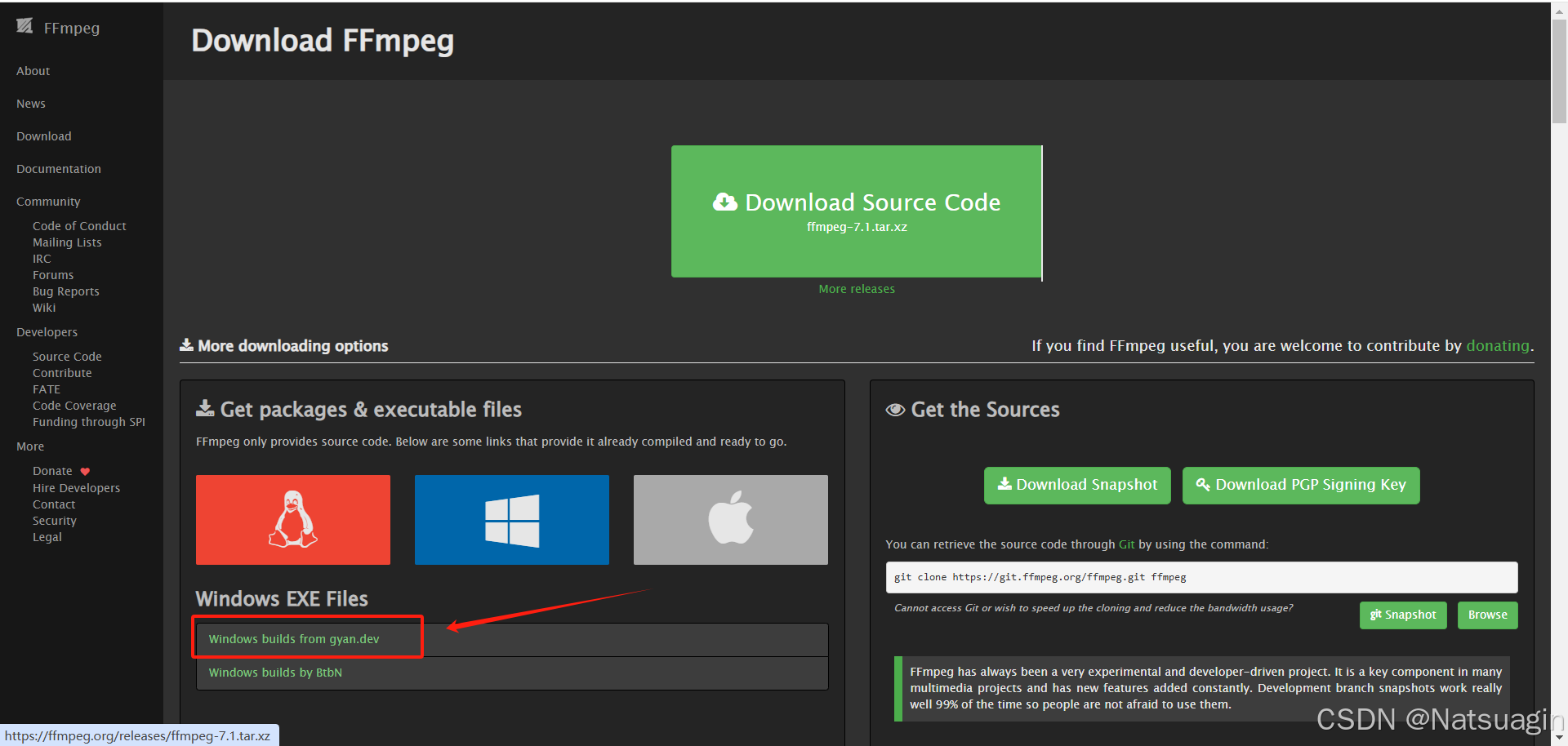 1. 打开 Dpwnload FFmpeg 官网