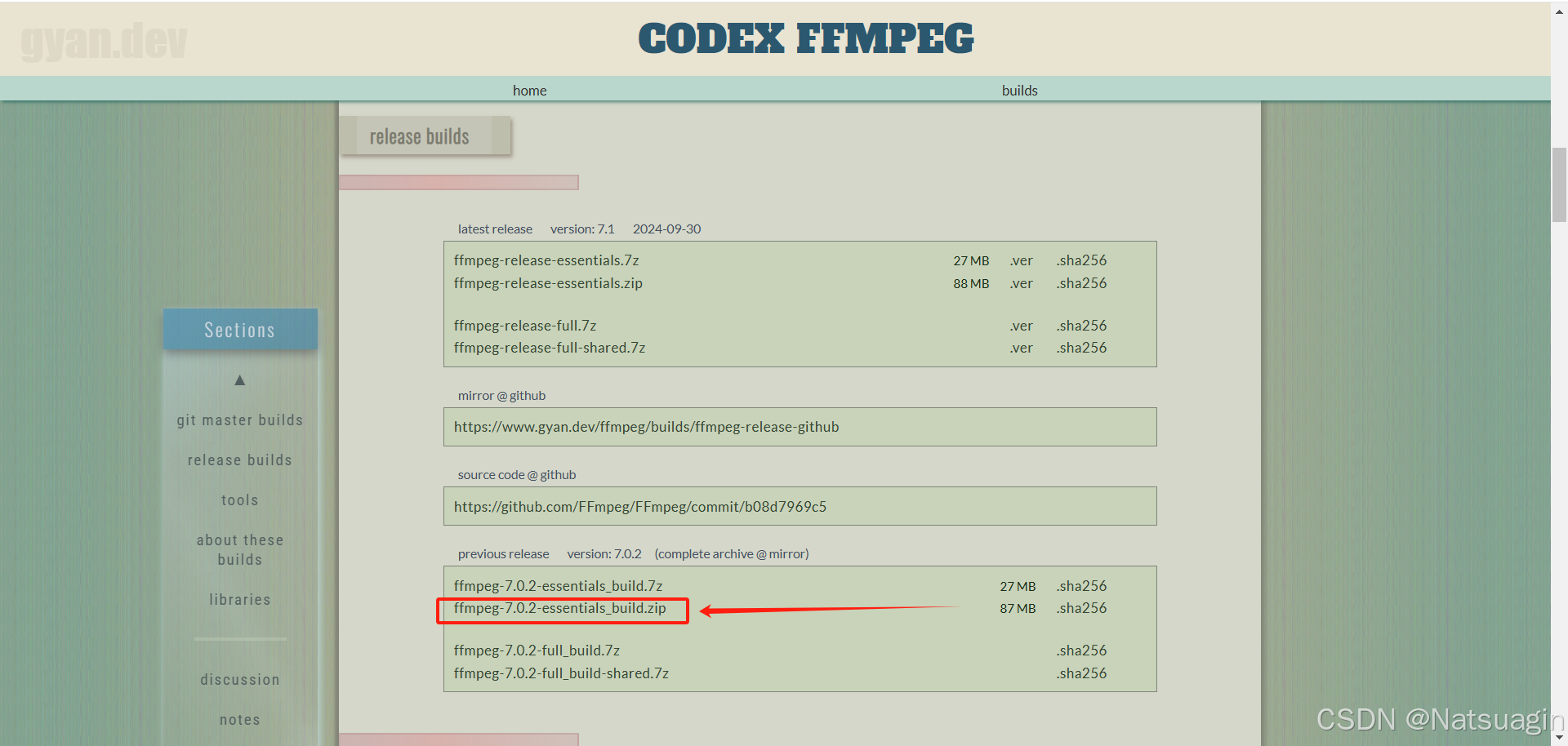 2.下滑找到release bulids部分,选择ffmpeg-essentials_build.zip