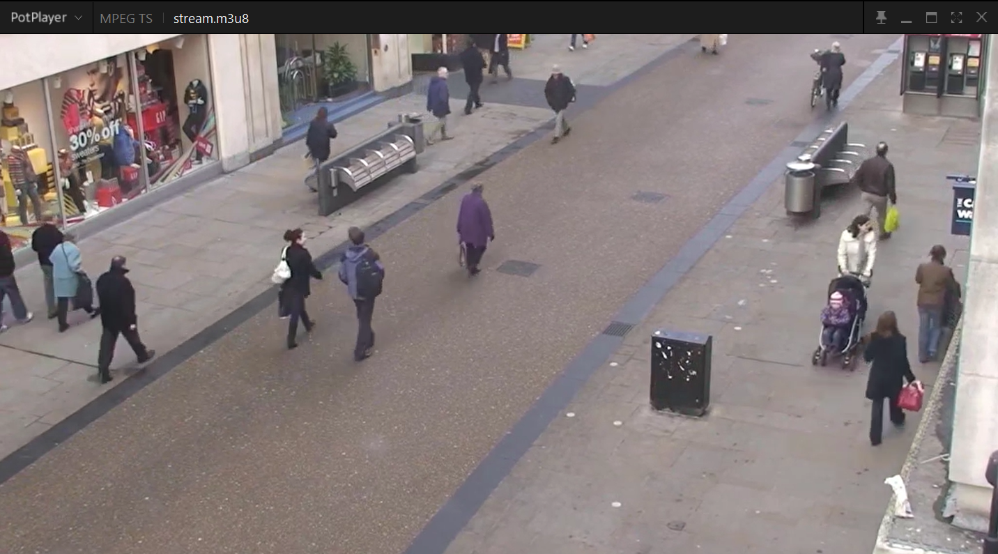 发布的HLS流地址为:http://192.168.31.164:9090/hls/stream.m3u8(通过PotPlayer打开)