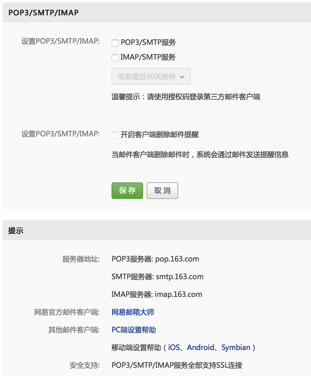 登陆邮箱-->设置-->POP3/SMTP/IMAP