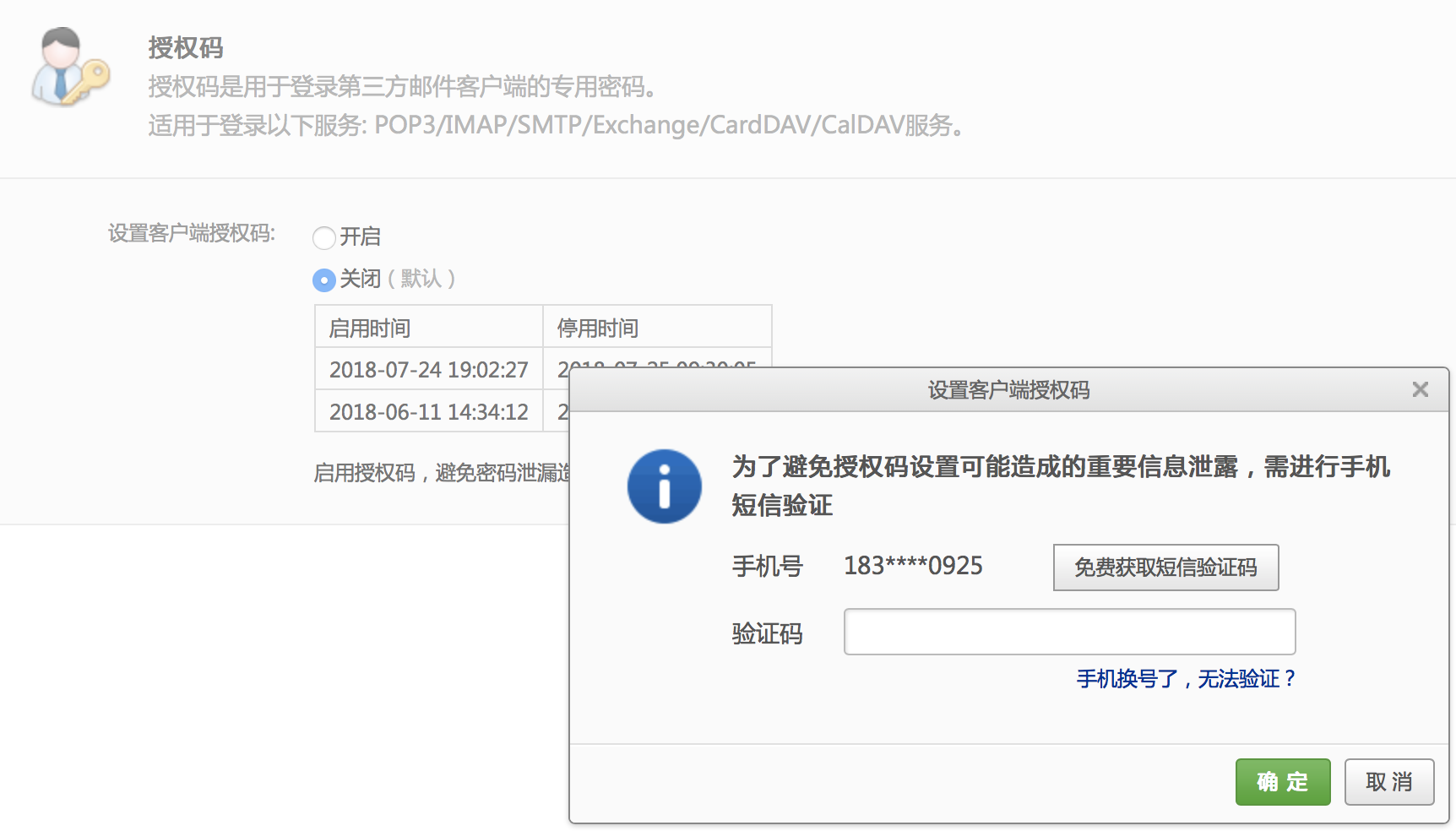 点击上述选项框,通过验证码的方式设置授权码。一定要打开上述服务,否则连不上。
