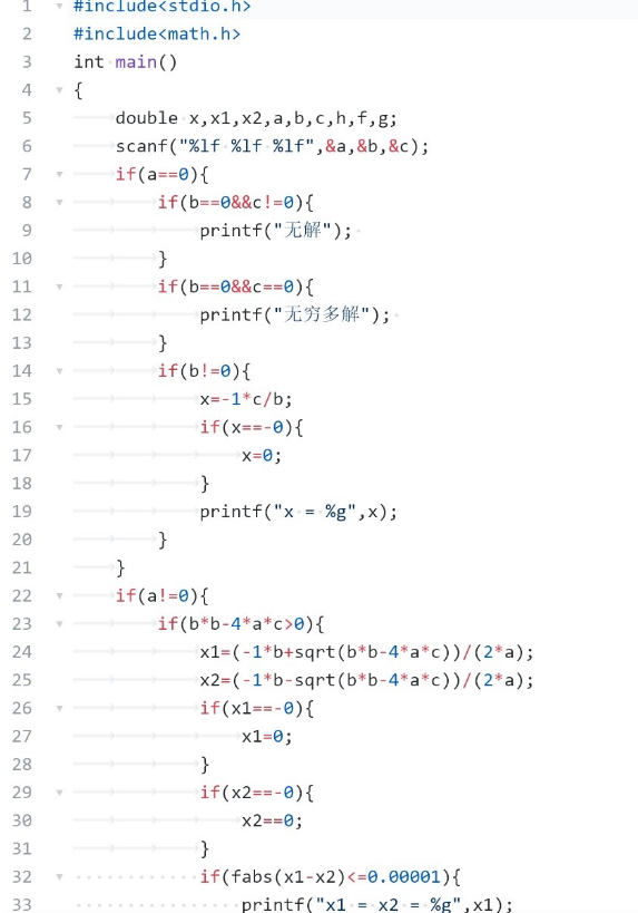 数据表达:用了x,x1,x2,a,b,c,h,f,g这些变量;a,b,c通过用户赋值得来,f,h分别表示了某个公式,这些都是浮点型变量;