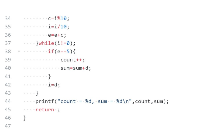 | 104 999 | 104 is counted./ count = 15, sum = 3720 | 104是满足条件的数,这区间有15个数满足条件,和为3720 |