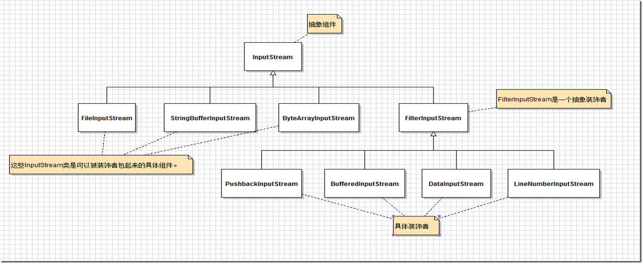 Java I/O类的实现原理是装饰者设计模式: