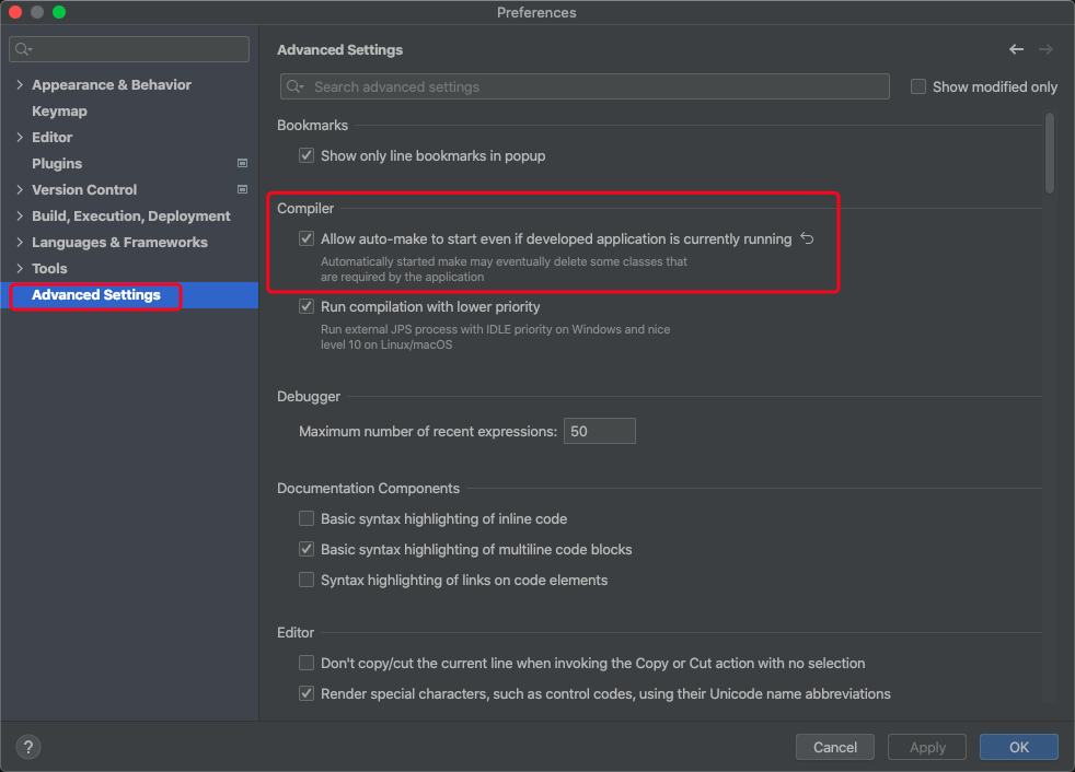 需要注意的是在进行热部署配置时,如果发现没有compiler.automake.allow.when.app.running,是因为2021之后的版本被迁移到了这里: