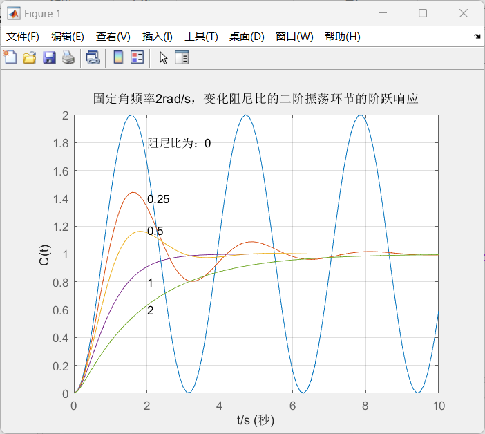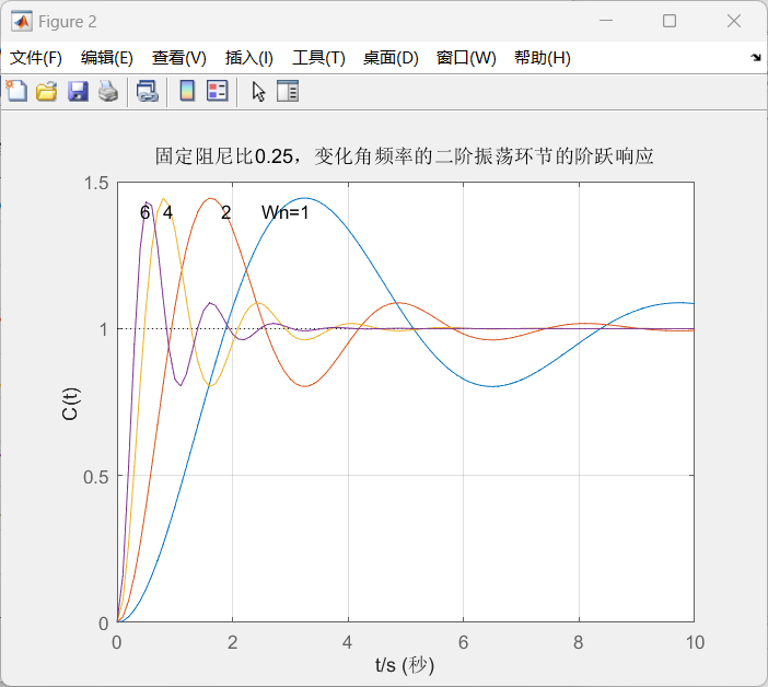 Matlab仿真二阶振荡环节的阶跃响应,观察阻尼比和自然振荡角频率 4