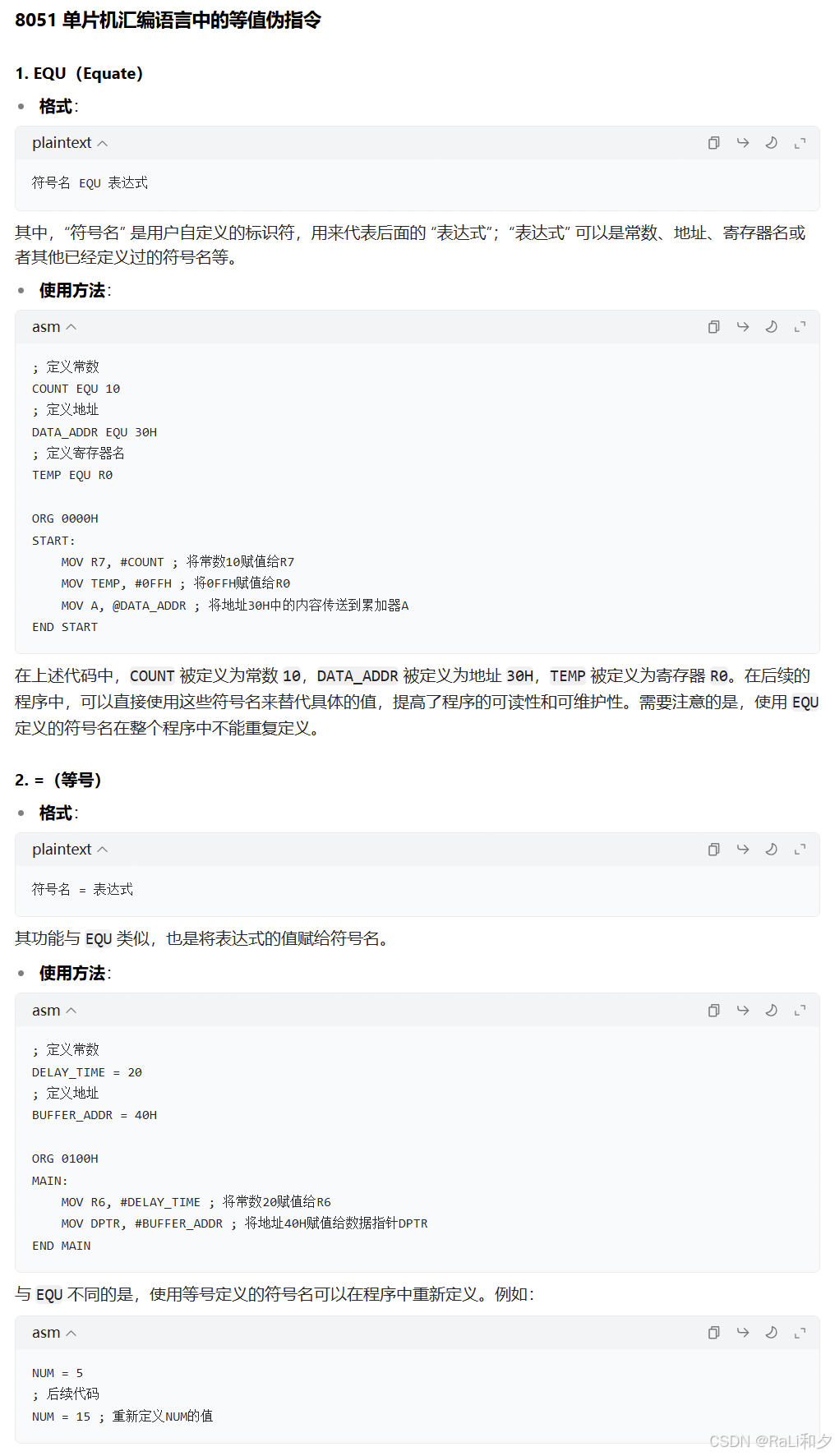等值伪指令EQU :