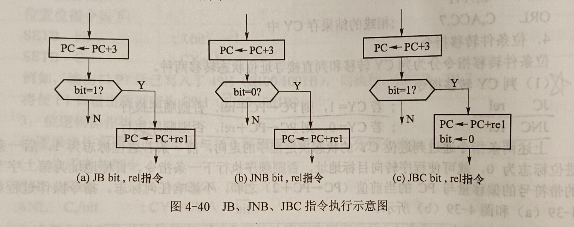 JB bit,rel ;(bit)=1,则PC<-PC+rel