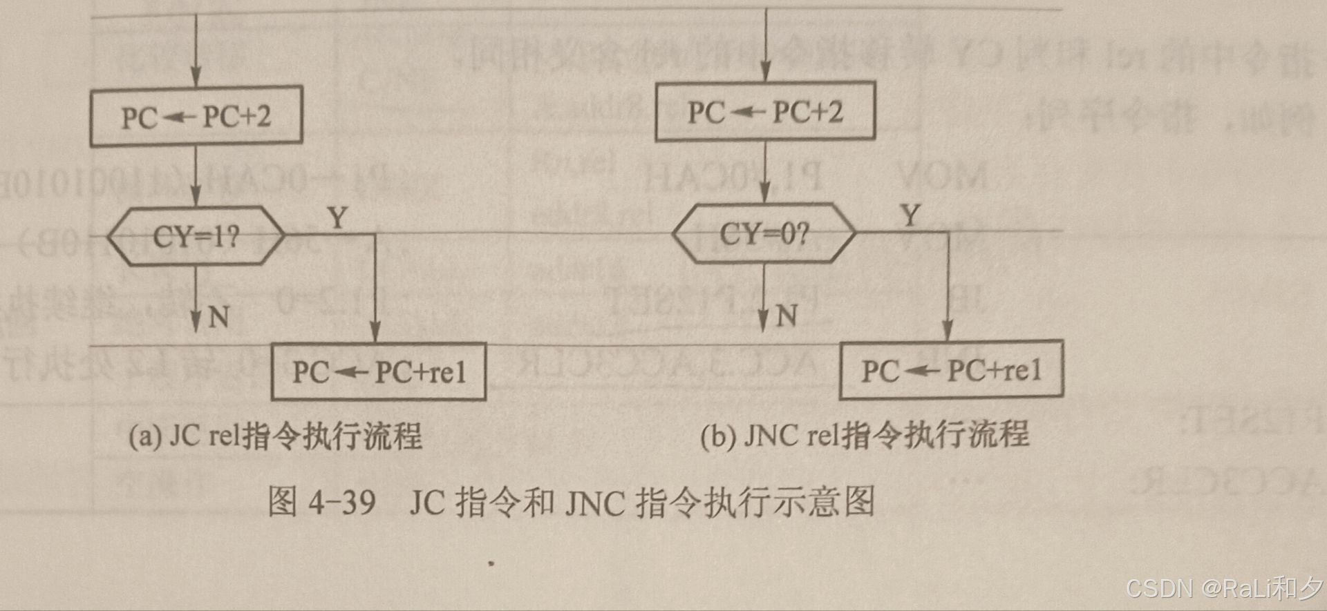 JC rel ;若CY=1,PC<-PC+rel,否则顺序执行