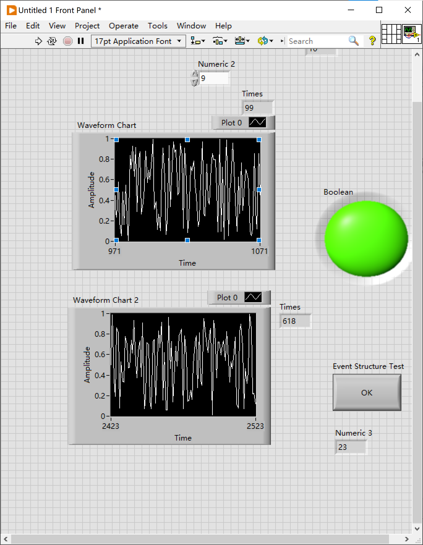 - Front Panel->右键->Graph->Waveform chart