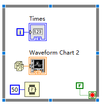 右下角为终止循环信号,通常使用False信号使循环持续进行,若给定True信号,则循环结束