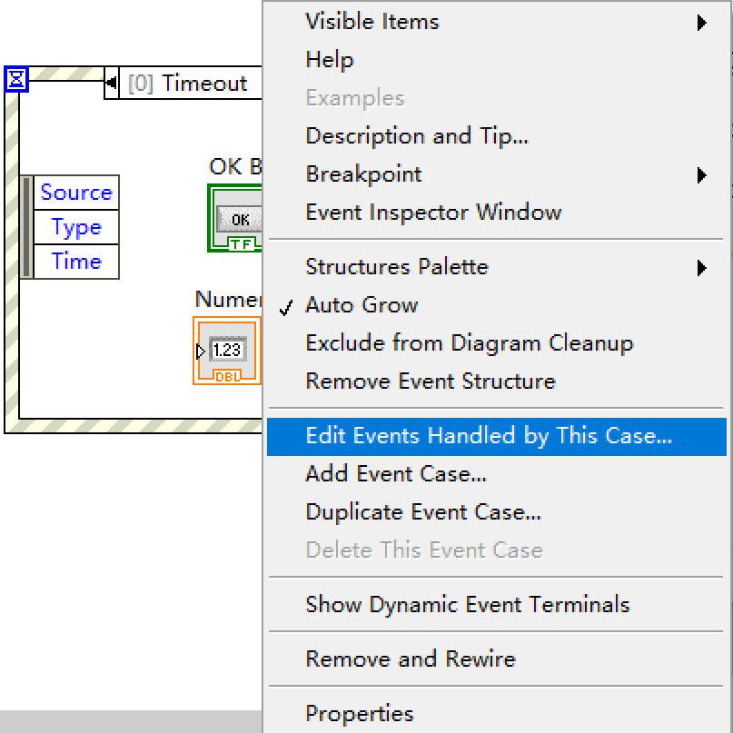 - Block Diagram 右键->Timing->wait(ms)