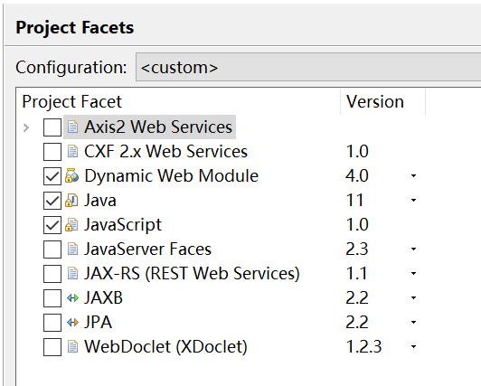 这里的Dynamic Web Module对应你的Tomcat版本,Tomcat9.0可以支持4.0;Java我们选择11