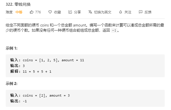 https://leetcode-cn.com/problems/coin-change/