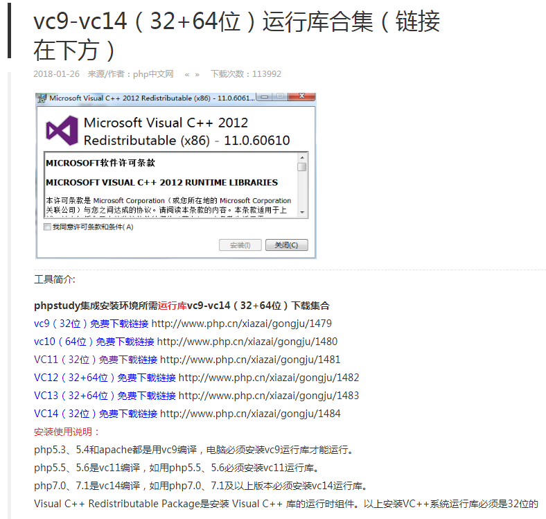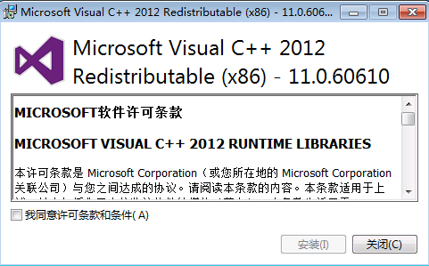 选择提示中的VC11(32位)相应的运行库下载后解压安装。
